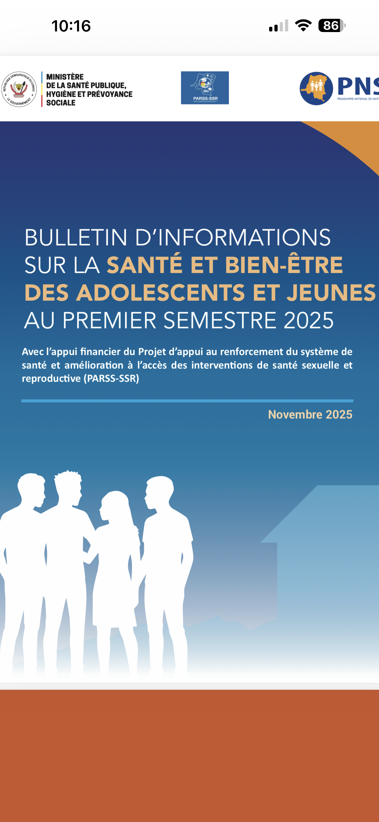 Le bulletin d'information santé et bien être des adolescents au premier semestre 2025 élaboré par le PNSA grace a l'appui financier de PARSS-SSR. Afin de permettre à toutes les parties prenantes de s’informer suffisamment sur les réalités du premier semestre 2025.